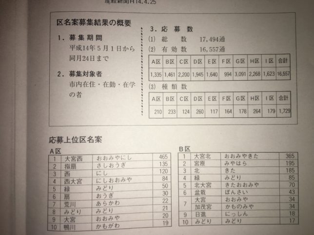 さて、ここからがいよいよ本題の区名の決定のあらましです。