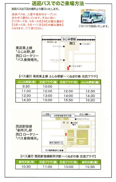 こちらは住所はお隣の三芳町になるのですが、ふじみ野駅から送迎バスが出ています。