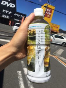 また、イートインコーナーこそないものの、ベンチも置かれており一休みにも最適です。そこそこ歩いたし、腰掛けてお茶を飲みます。