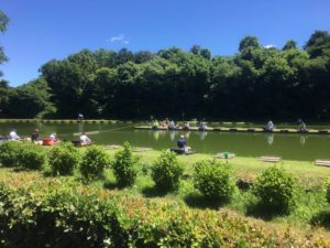 花菖蒲園の近くの前山の池には、ヘラ鮒センターが併設されています。