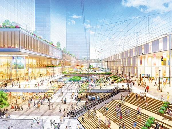 駅北側に大規模な人工地盤を巡らせ商業エリアを広げてこそ同構想であり、東京都心部でも同様の開発が進んでいるため不可能ではない。