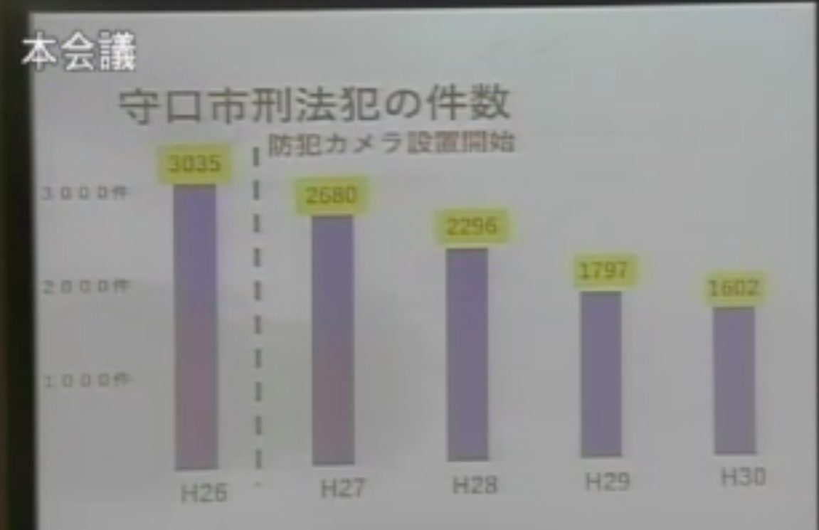 防犯カメラの犯罪抑止効果は明らかとした上で、守口市の手法でいけば市民プライバシーの担保や犯罪抑止効果が期待できると同議員。