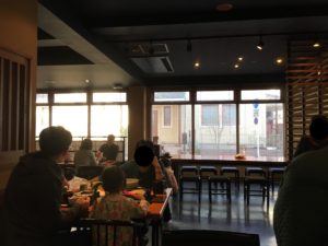 黒を基調に落ち着いた店内では、お昼時ということにありテーブル席に多くのお客がいらっしゃいました。