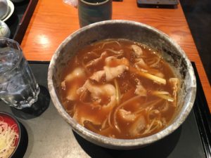 自分も丼物とそばセットにしようかと思いましたが、寒空の下歩いていくばくか寒さを感じていたので温まるカレー南蛮そば(税抜¥980)を注文。