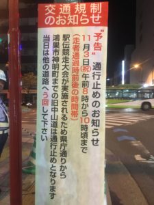 大会に伴いまして、8:00〜12:00頃にかけて、旧中山道を中心に交通規制がかかります。