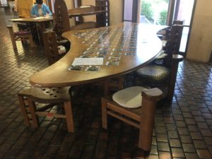 中のテーブルもとても奇抜な形です