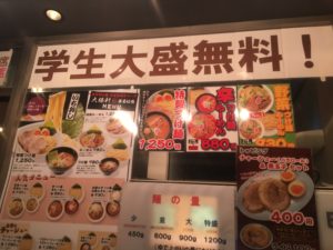通常は追加料金がかかるのですが、学生の方は学生服、あるいは学生証呈示で大盛りが無料になるとのことですよ!
