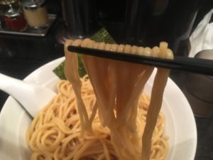 ホームページによると、大量の豚骨、鶏ガラを通常の倍以上の時間煮込み、そこにさらに煮干しやサバ節も入れて、濃厚かつ風味豊かでパンチの効いたスープに仕上げているということです。