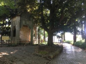 石碑の周りをさらに囲いが囲っている作りで、よほどの偉業を残した人なのだということが見て取れます。