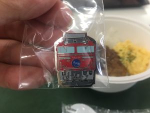 ハチクマライスには特典として、3年前まで上野~札幌間で走っていた寝台特急北斗星のピンバッヂが付いてきます