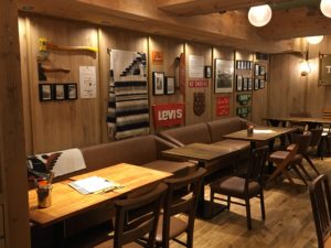 同店のコンセプトは「山小屋」。キャンプなどで訪れる山の心地よさを感じてもらおうと、エキュート大宮全体のイメージでもある「ツリー」にもかけてゆったりできておしゃれな空間を演出する。英語で木材を意味する「TIMBER」を名に関するだけあり、見事にマッチしているといえよう。