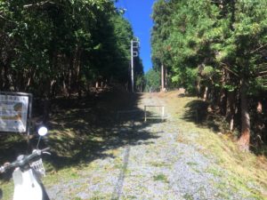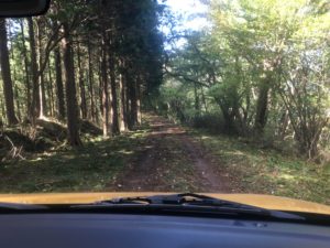 峠の先に、車では入れない未舗装の道が続いている。車から降りて徒歩で移動します。