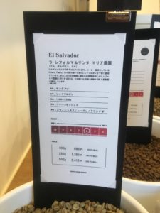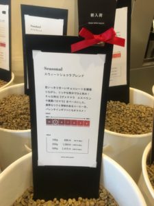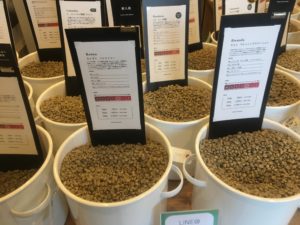 あまり長く話すのもあれなのでこれくらいにしておきますが、店内には30種類近いコーヒー豆があり、100gからお買い求めいただけます。