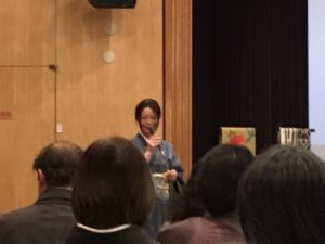 各団体の発表に先駆けて、シーラ・クリフ氏によるミニ講演「恋する銘仙〜ファッションとしてのきもの〜」が行われた。