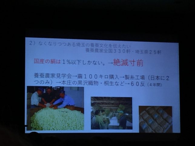 「なくなりつつある埼玉の着物文化を伝えたい」に関する取り組みとしては、県産ブランド繭の振興をおこなっている。