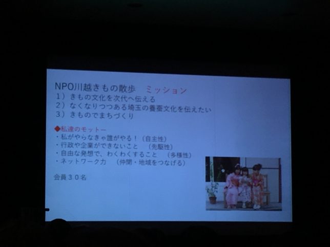 続けて、NPO川越きもの散歩の大島寛子理事が登壇しその取り組みを紹介した。