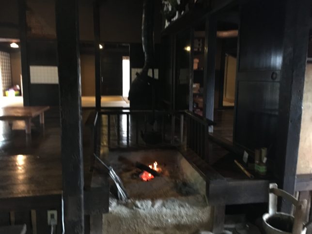 そして土間からは3間四方で板張りの座敷に上がることができますが、この境には囲炉裏が再現されており実際に火も灯っています。
