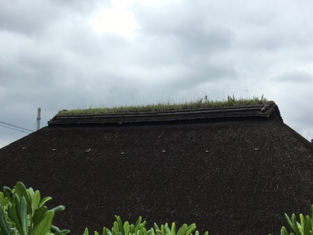 これはくれぐしという手法。一番痛みやすい屋根の頂部に土を撒いて草木を植えることで、風雨から家を守るための造りです。