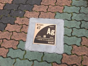 その一環で、市民が化学に触れ合う機会を提供するために周期表の元素を順番に記したプレートが道に埋められているというわけです。