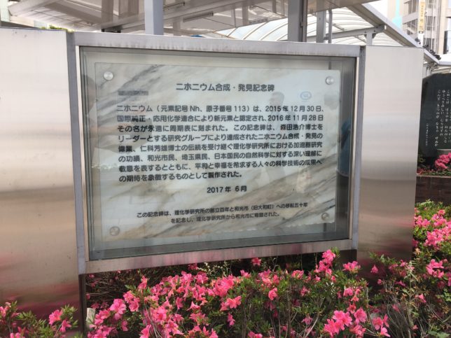 この地でニホニウムが発見されたことを改めて教えてくれます。