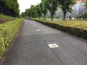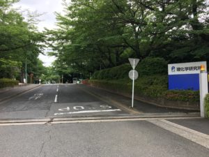 このプレートが埋まっているのが…、ニホニウム誕生の地となった理化学研究所正門です。