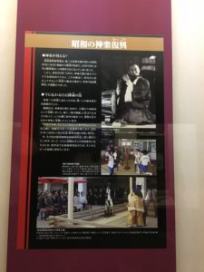 同館の一角には、同社で奉納されている鷲宮催馬楽神楽に関する展示があります。