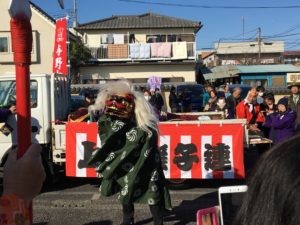 この後会場では獅子舞とひょっとこが演じられた。囃子連の皆様の演奏の元それぞれ軽快な踊りを見せ、幸運が訪れるよう獅子舞に噛まれる参加者の姿もあった。