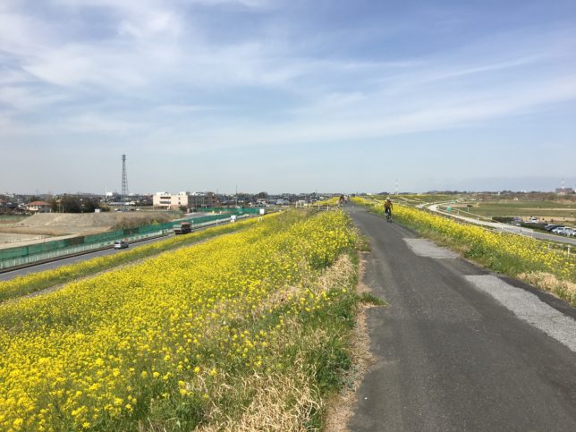 土手を走るバイカーもこの時期は走りがいがありそうだ。