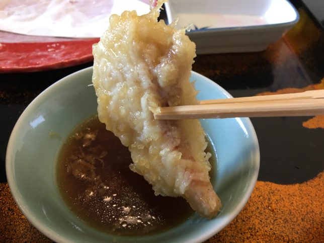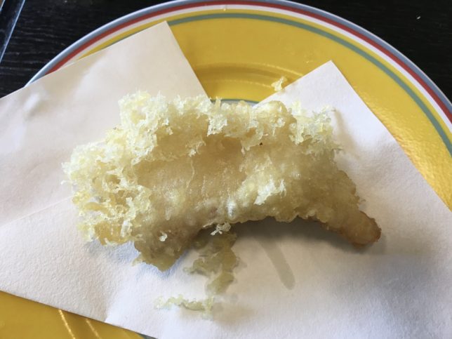 盛りつけの都合で一切れ後からやって来たが、こちらが件のなまずの天ぷら。