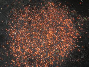 オレンジ色をした、謎の破片が地面に転がっているではないか!